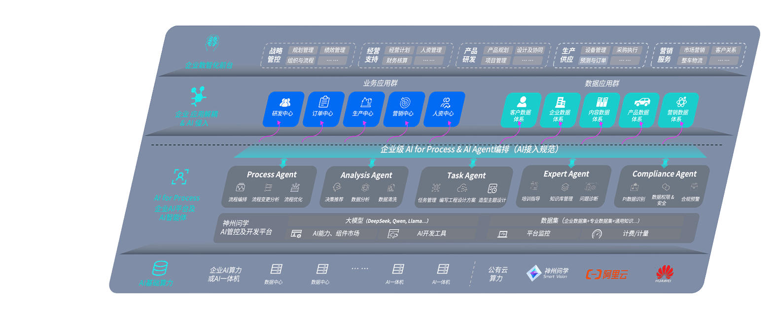 端到端的一站式AI工作空间深度融合了从企业战略规划到日常经营的全流程业务板块,,,定向解决车企内部领域多、、部门多、、、链条长、、、场景碎片化等难题,,,支持车企快速构建以AI为核心的生产力写作体系,,,,实现任务执行与AI能力的无缝集成与交互